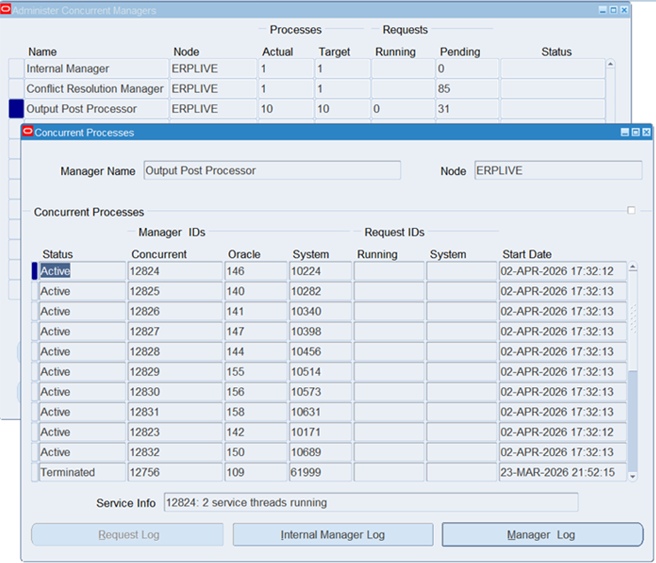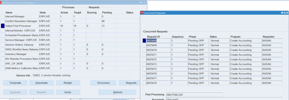 In Oracle E-Business Suite, one of the issues faced by EBS administrators is pending concurrent requests stuck in the Output Post Processor (OPP) or Standard Manager.