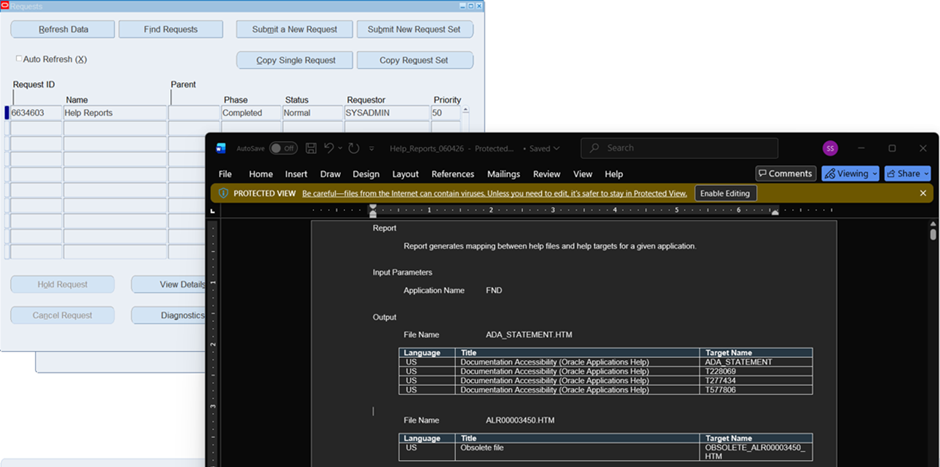 Reviewed a Sample Request Help Reports was running normally and produced output successfully.