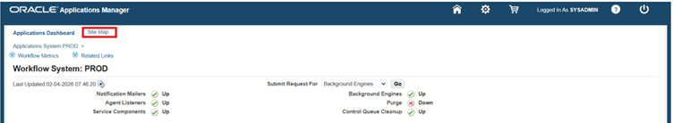 Navigate to System Administrator > Oracle Applications Manager > Applications Dashboard.